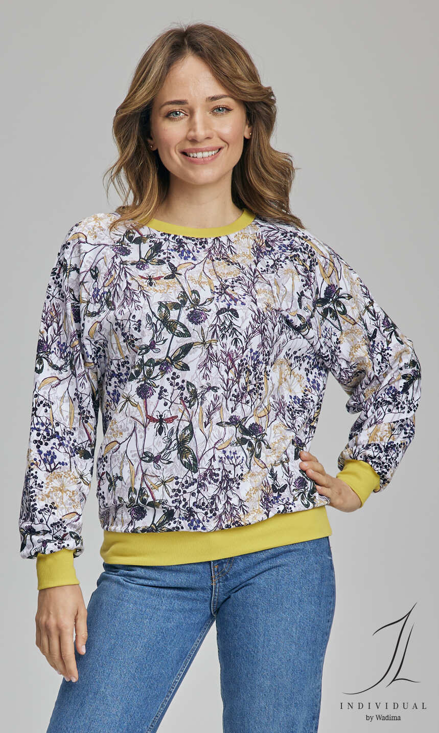 Fason luźny, z reglanowym rękawem wykończonym jak dół bluzy ściągaczową dzianiną w kolorze słonecznej oliwki i ściągaczową wypustką przy półokrągłym dekolcie.W sportowym stylu idealna do jeansów, choć z czarnymi spodniami czy spódniczką wygląda równie interesująco. Do wyboru w dwóch kolorach. Oryginalna, wygodna i trwała.