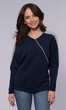 Dekolt w serek, wykończony wąziutką, melanżową wypustką, schodzącą w dół z jednego boku. Rękaw na wzór lekkiego kimona, zakończony podwinięciem. Dół z doszytym z tej samej dzianiny, pięciocentymetrowym mankietem. Ze spódnicą 105132 stanowi bardzo miły dla ciała, wygodny, cieply i praktyczny sportowy komplet damski.