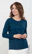 Półokrągły dekolt wykończony wąziutką wypustką w tym samum kolorze. Rękaw wszyty klasycznie, z podkrojem, zakończony jak dół bluzki podwinięciem. Na przodzie karczek z odcięciem, z wszytą gipiurową, wąską taśmą w formie połączonych łezek. Pośrodku lekkie marszczenie. Miękka, miła dla ciała, wygodna i praktyczna.