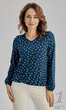 Forma z dopasowaną górą i zbluzowanym lekko dołem. Dekolt w serek, wykończony wąziutką wypustką z tego samego materiału. Rękaw z klasycznym podkrojem, wykończony jak dół bluzki zaszytą w materiał wąską gumką. Bluzka bardzo kobieca, idealna zarówno do spódnicy jak i spodni.