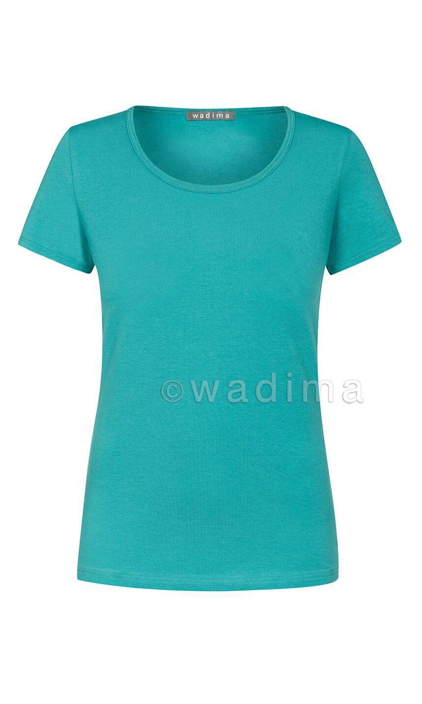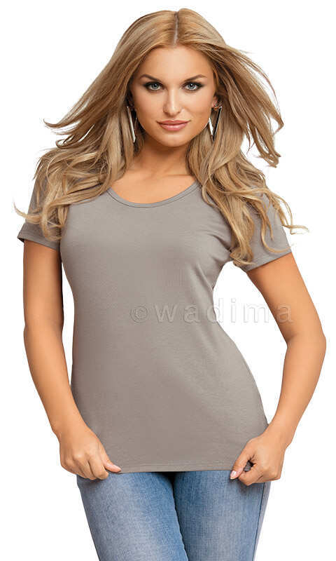 Klasyczny, prosty, w jednolitym kolorze, bez żadnych ozdób i bardzo dobrej jakości T-shirt damski. Wykonany z połączenia bawełny z elastanem, dzięki czemu sprężysty, mięciutki i przyjemny dla ciała.