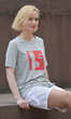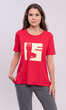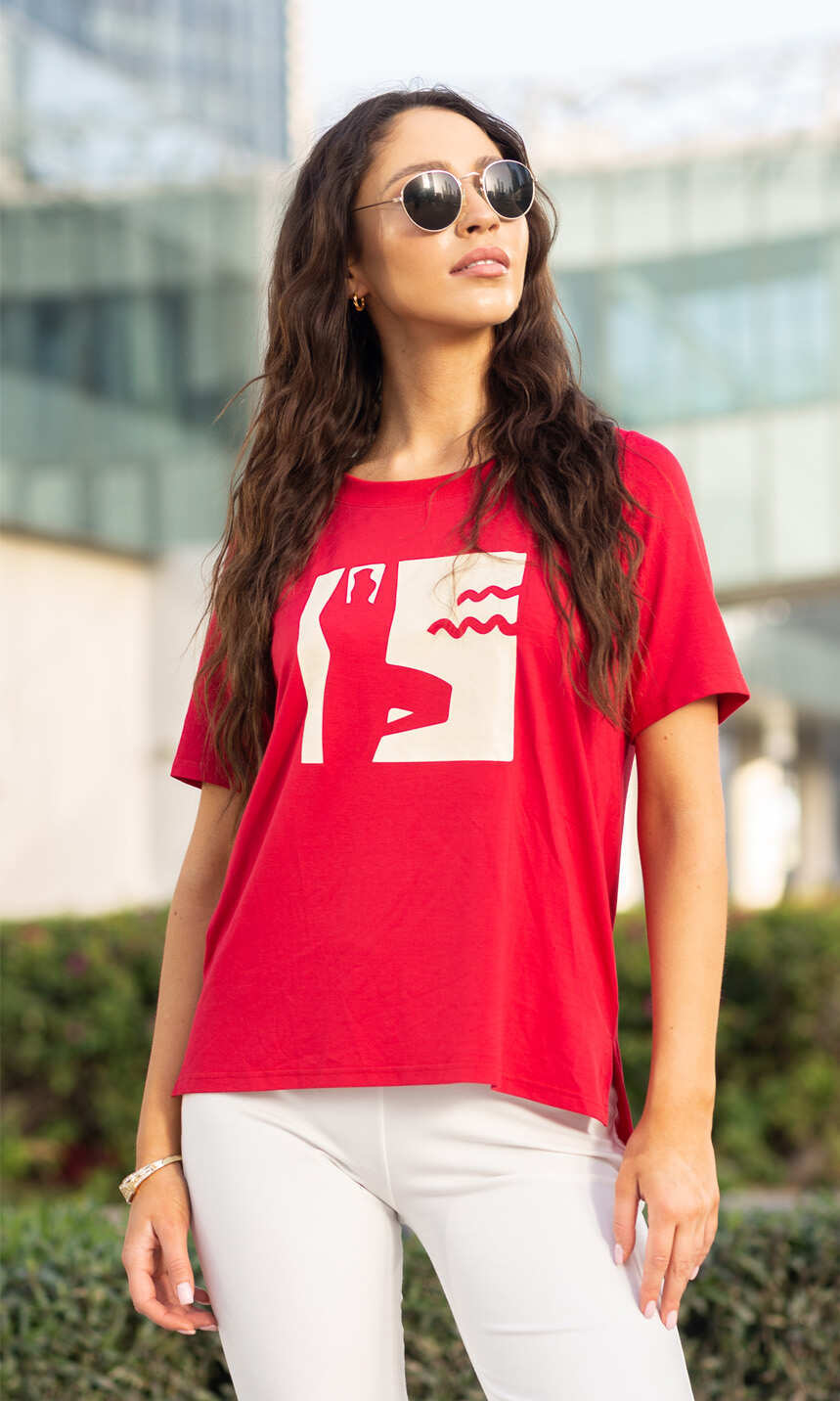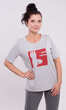 Półokrągły dekolt wykończony ściagaczową, szeroką wypustką z tego samego materiału. Na przodzie delikatnie gumowany sitodruk. Rękaw wszyty klasycznie, zakończony jak dół bluzki podwinięciem. Po bokach niewielkie rozporki. Tył lekko dłuższy od przodu. Idealna zarówno do materiałowych lub dżinsowych spodni czy spódniczki, jak również w sportowym stylu - do spódniczki czy spodni dresowych.