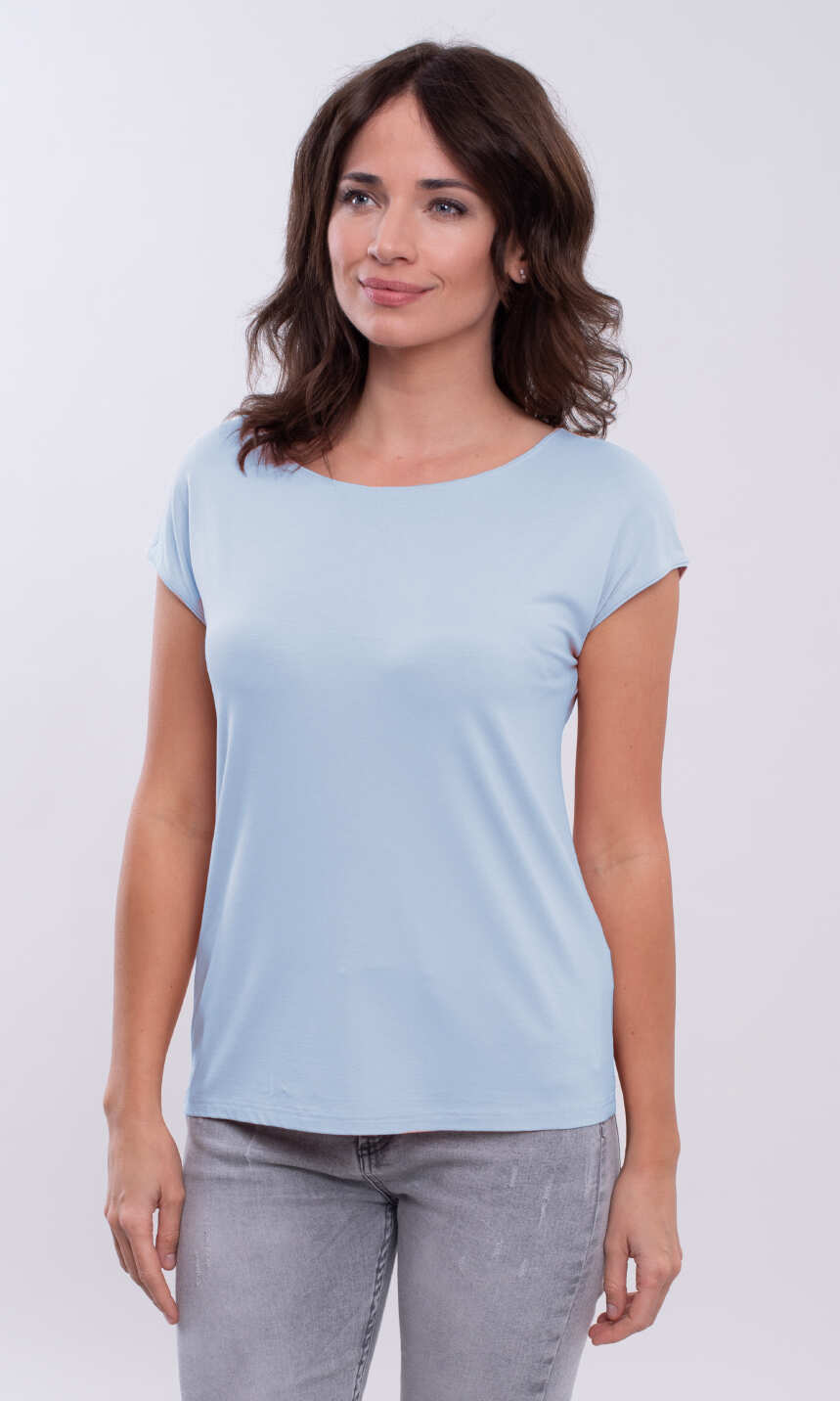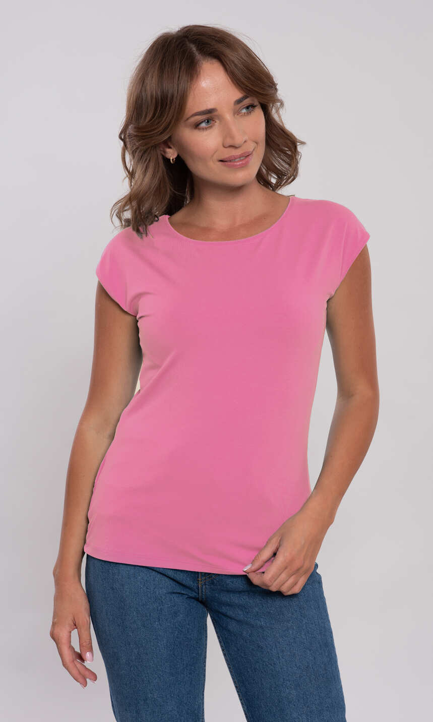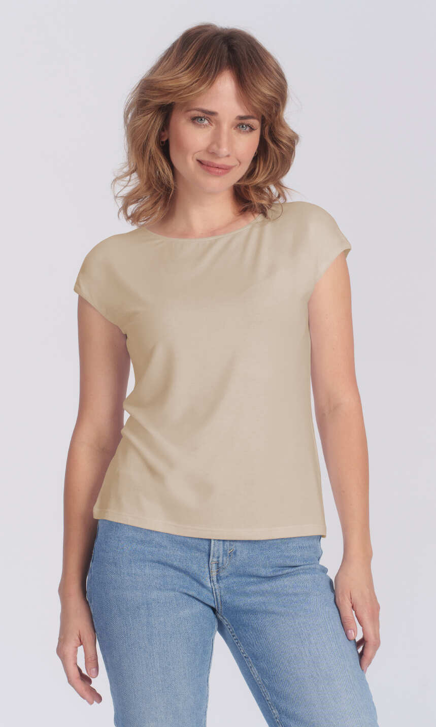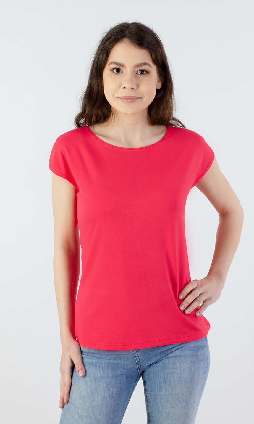 Prosta, elegancka forma i bardzo dobra jakość to atuty tego modelu. Wykonana z połączenia delikatnej, chłodzącej latem wiskozy i niewielkiej ilości nadającego dzianinie sprężystości elastanu.
