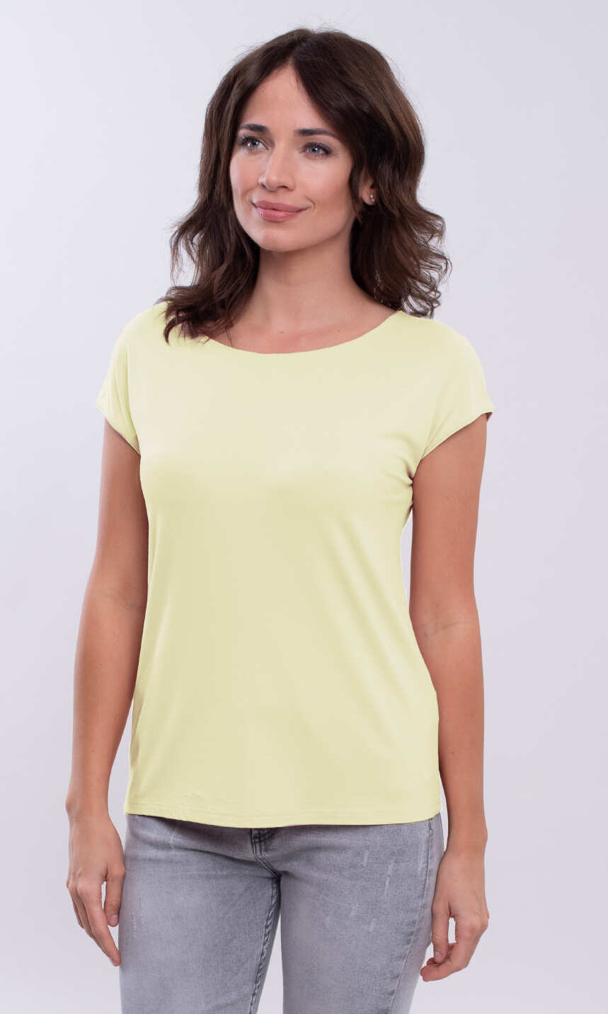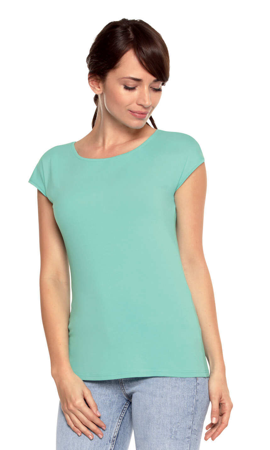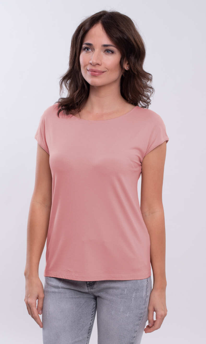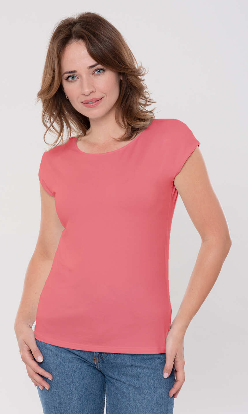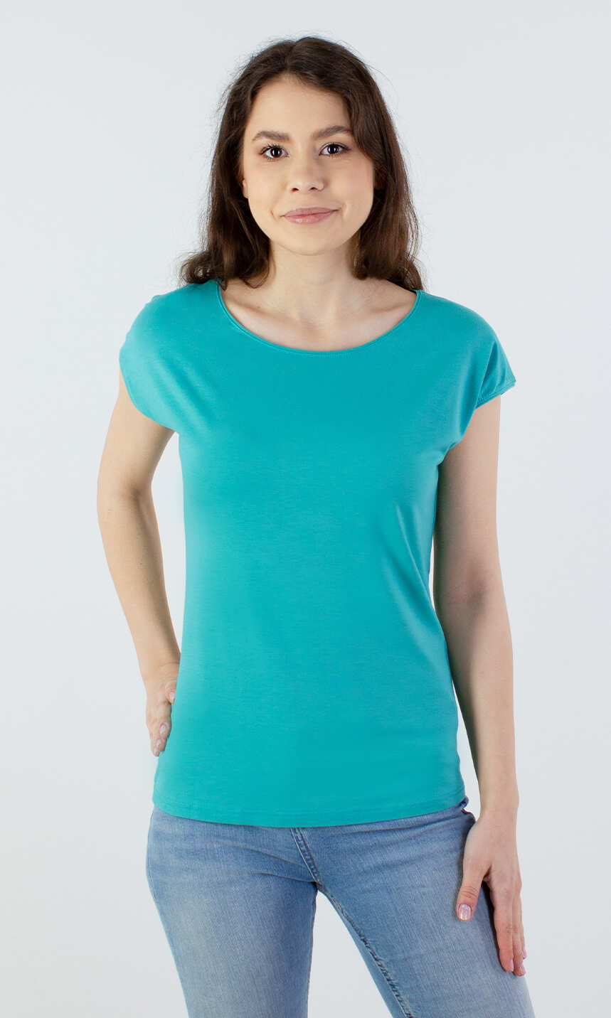 Prosta, elegancka forma i bardzo dobra jakość to atuty tego modelu. Wykonana z połączenia delikatnej, chłodzącej latem wiskozy i niewielkiej ilości nadającego dzianinie sprężystości elastanu.