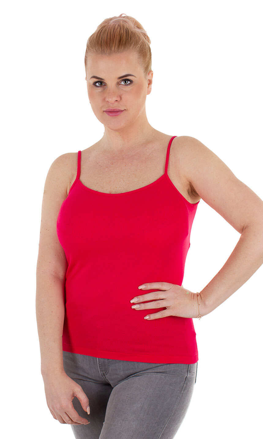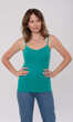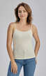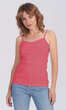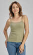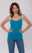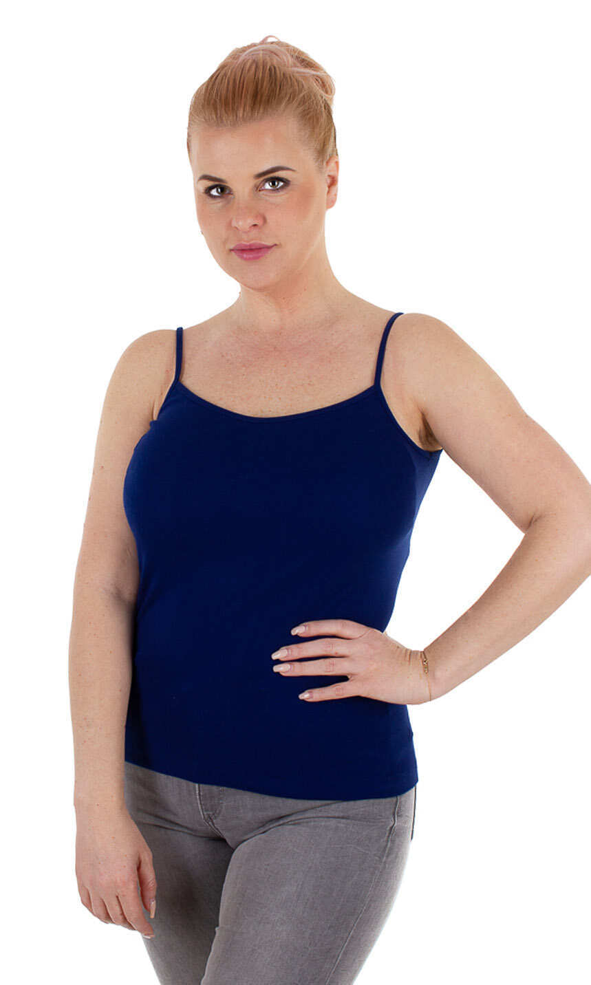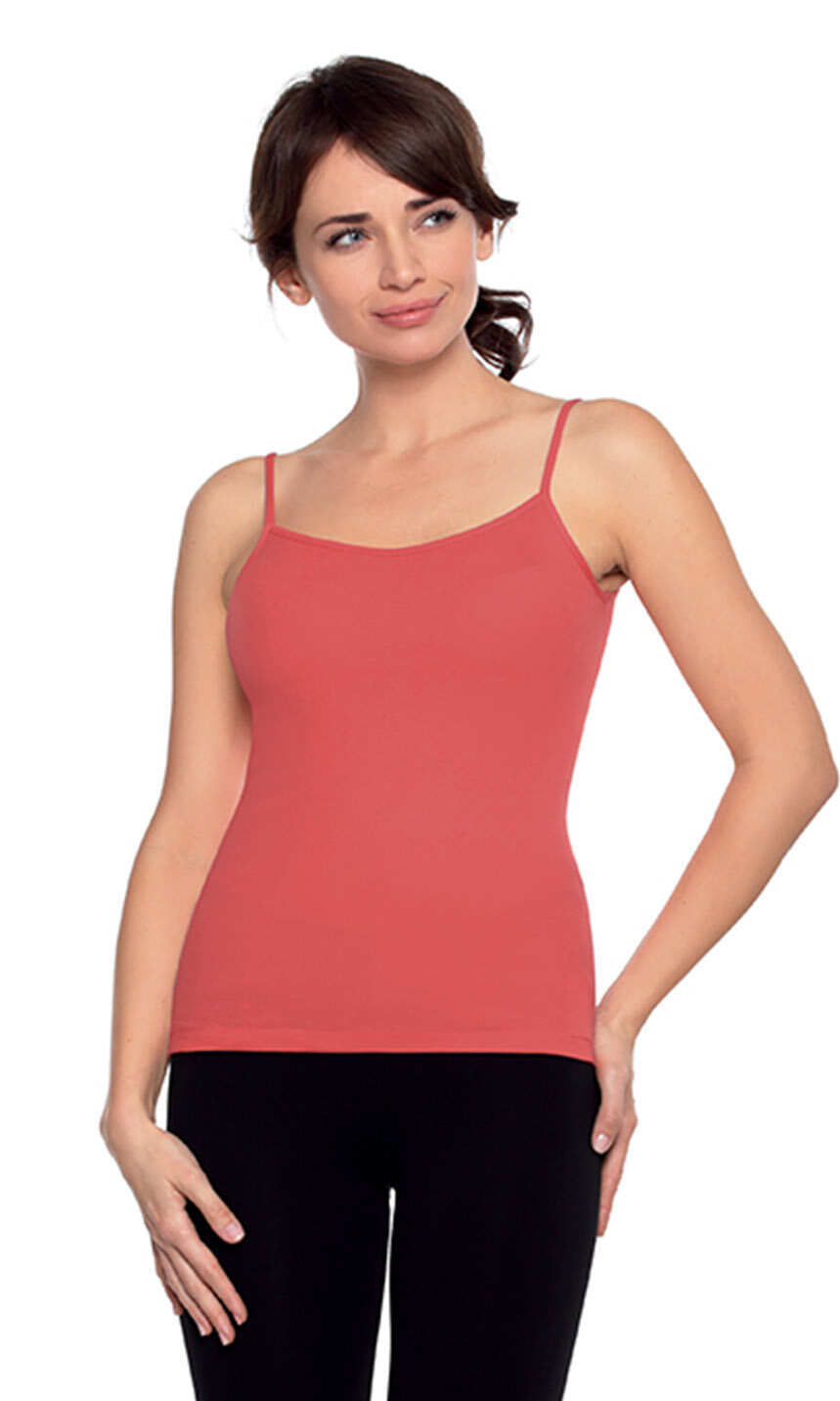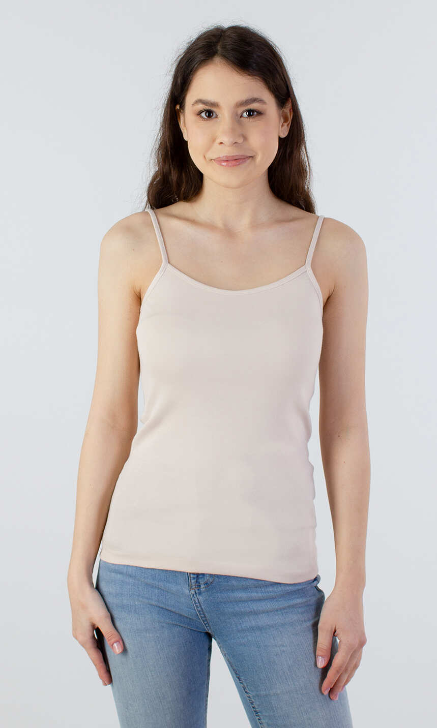 Dekolt oraz ramiączka wykończone bawełnianą lamówką. Idealna na upalne dni, zaś w dni chłodne z powodzeniem sprawdzi się jako baza pod marynarkę lub sweter lub jako zwykły podkoszulek.