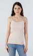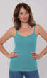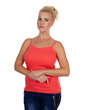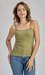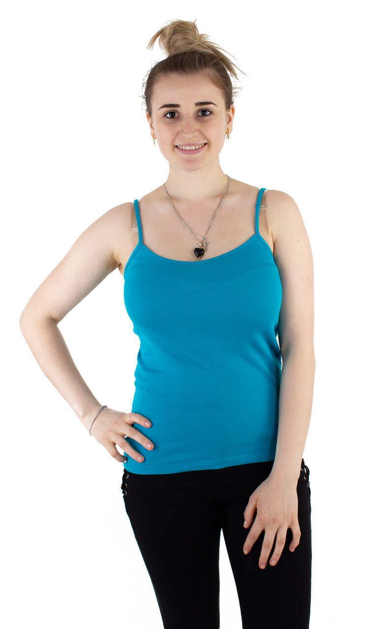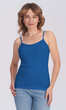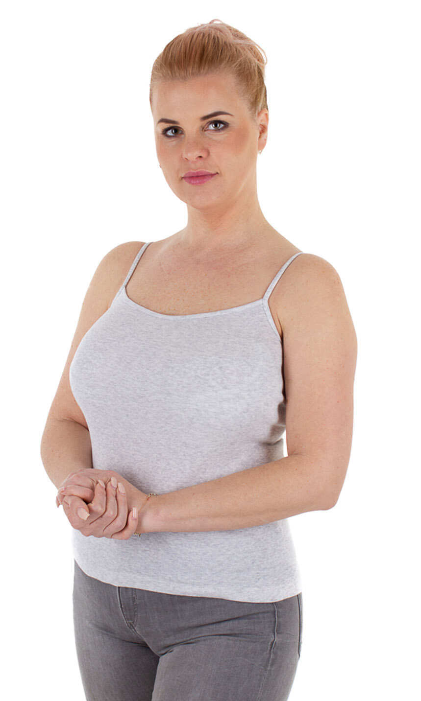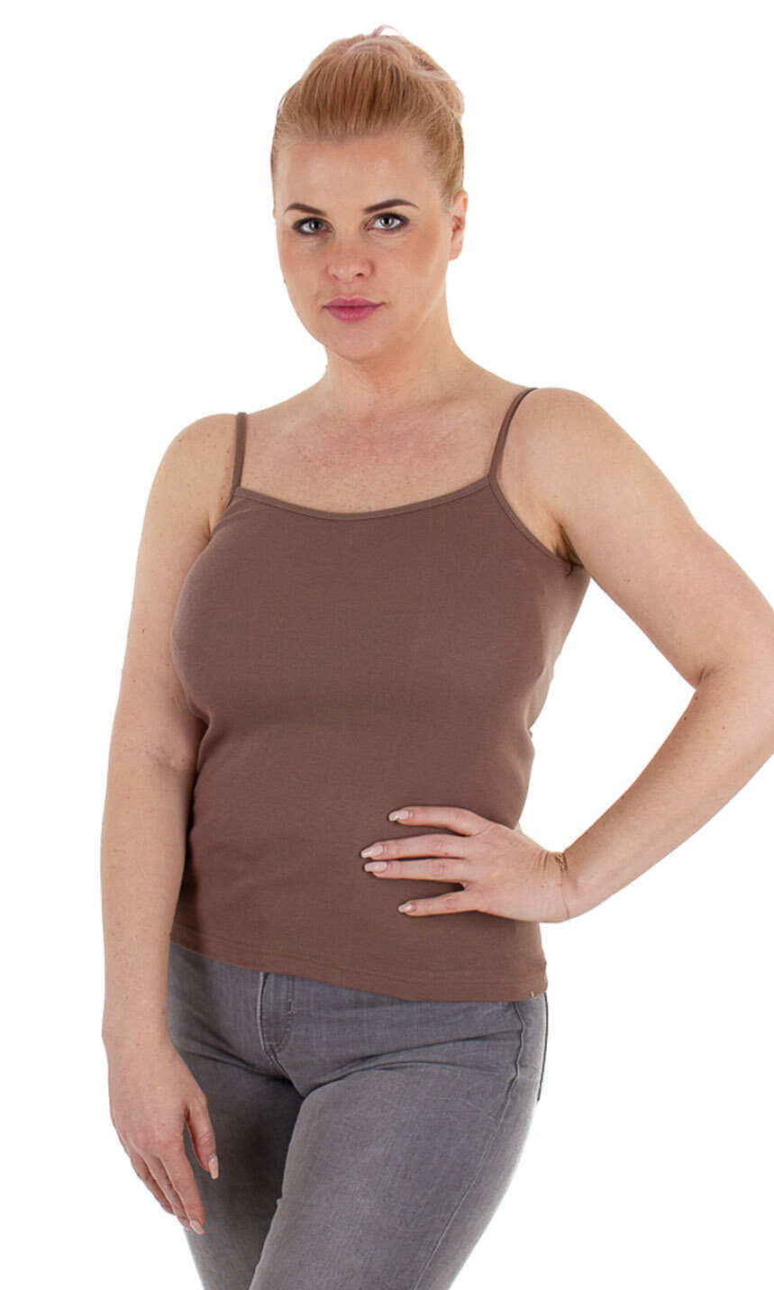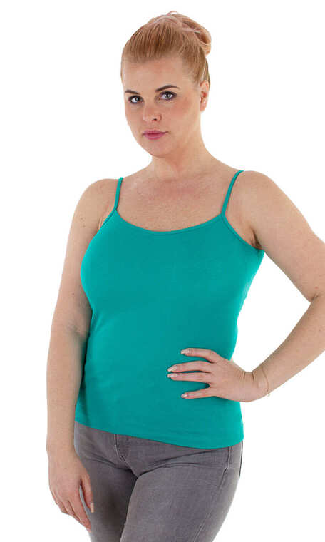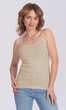 Dekolt oraz ramiączka wykończone bawełnianą lamówką. Idealna na upalne dni, zaś w dni chłodne z powodzeniem sprawdzi się jako baza pod marynarkę lub sweter lub jako zwykły podkoszulek.