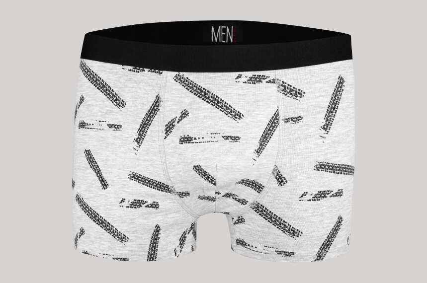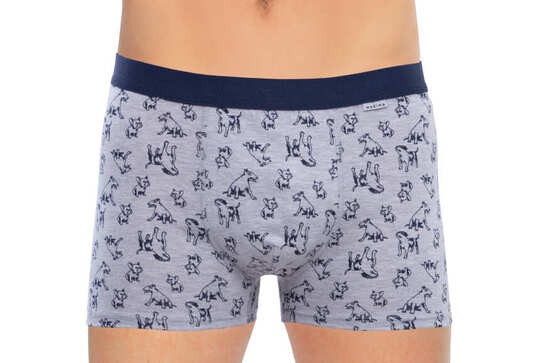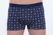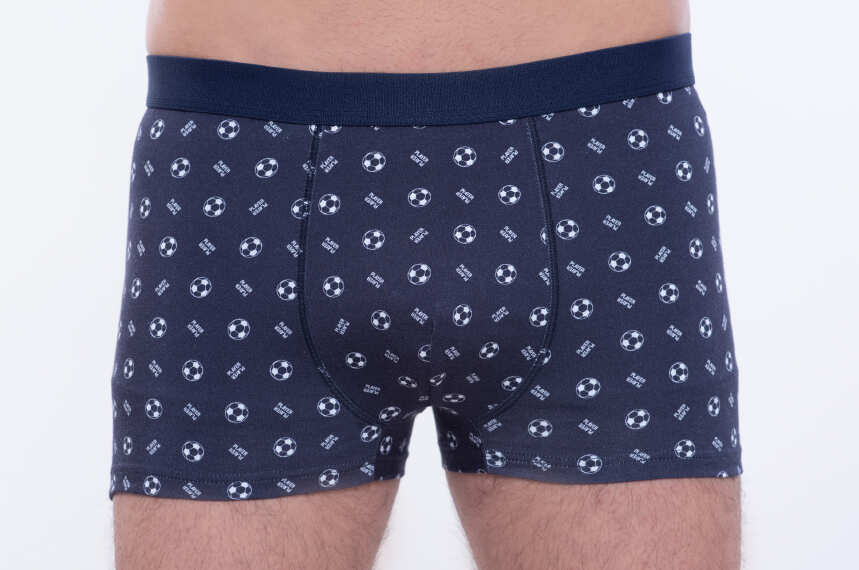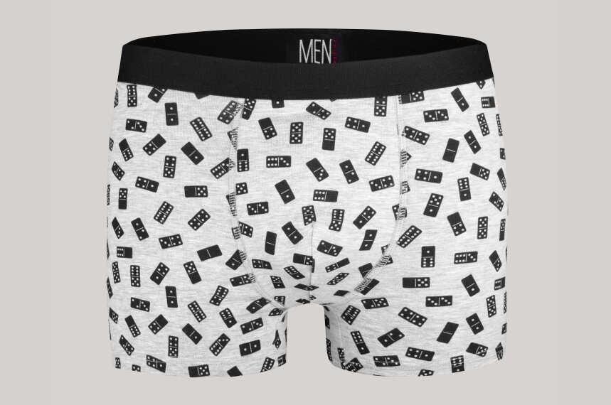 Bokserki z nadrukiem i dekoracyjnym przeszyciem. W pasie wszyta szeroka guma. Nogawki zakończone podwinięciem. Anatomiczny krój wzmacnianej dodatkową warstwą materiału kieszonki na przodzie, zapewnia użytkującemu komfort i wygodę.