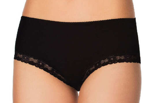Pas wykończony dekoracyjną, wąską gumką. Tył i przód gładki, bez ozdób. Nogawki mało wykrojone, zakończone elastyczną, wytrzymałą koronką. Bardzo dobre gatunkowo, wygodne i trwałe.