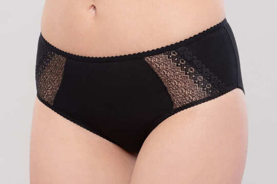 Pas i nogawki wykończone ozdobną, cienką gumą. Z obu boków na przodzie, koronkowe wstawki. Bardzo dobre gatunkowo. Szykowne, bardzo dobre gatunkowo, wygodne i trwałe.