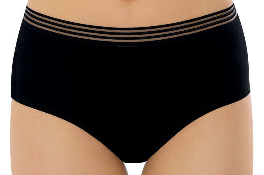 Z dekoracyjnym, szerokim wykończeniem pasa. Bardzo dobre gatunkowo. Wykonane z połączenia miękkiej bawełny ze sprężystym elastanem.