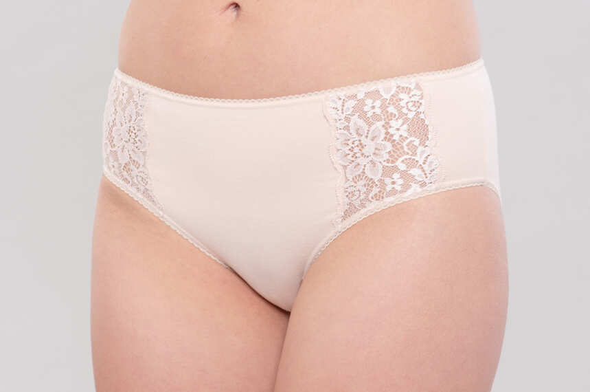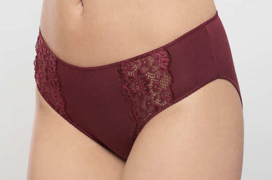 Niższe w stanie od fig 100245, z szykownymi, koronowymi wstawkami na przodzie. Wykonane z połączenia najlepszej jakości naturalnej wiskozy modal, bawełny i niewielkiej ilości nadającego dzianinie sprężystości elastanu.