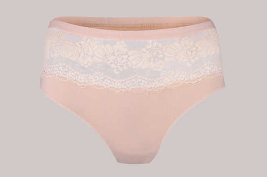 Przód bardzo dekoracyjny, z szeroką, połyskującą, koronkową wstawką w tym samym kolorze. W pasie, by zminimalizować grubość, wszyta płaska, delikatna gumka z meszkiem. Nogawki wykończone cienką, ozdobną gumeczką. W kolekcji zaliczane do bielizny "z górnej półki". Z podkoszulkiem 102107 tworzą bardzo ładny komplet eleganckiej bielizny damskiej.