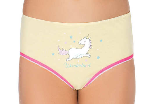 Figi w jasnych, pastelowych kolorach, z przodu ozdobione ciekawym, fantazyjnym nadrukiem. Wykonane z najwyższej jakości czystej bawełny.