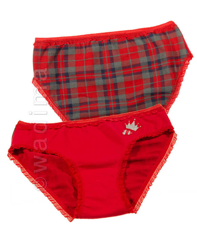 Przód cały w czerwonym kolorze, tył w szaro - czerwoną kratę. Brzegi nogawek i pasa z wszytą wąską, obszytą gęstym overloockiem czerwoną gumką oraz delikatną, czerwoną falbanką. Na przodzie z lewej strony malutki sitodruk z serduszkiem oraz mała korona ze srebrnym brokatem. Wykonane z połączenia bawełny i elastanu, dlatego miłe dla ciałka, miękkie i elastyczne. Bardzo wygodne. Prawdziwy "cukiereczek" wśród dziecięcych fig. W połączeniu z podkoszulkiem 40227 tworzą bardzo ładny dziewczęcy komplecik.