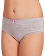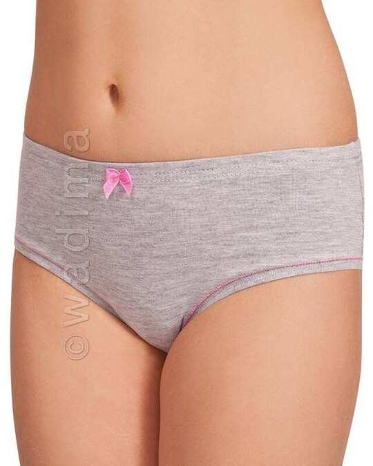 Gładkie, w jednolitym kolorze szarego melanżu z wdzięczną, satynową kokardką z przodu. Nogawki, by nie ocierały, wykończone bawełnianą wypustką z tego samego materiału z dekoracyjnym różowym przeszyciem na szwie. W pasie wciągnięta i przeszyta gumeczka. Pakowane po dwie sztuki. Możliwość zakupu jednej sztuki. Z podkoszulkiem 40246 tworzy bardzo ładny, dziewczęcy komplet bieliźniany.