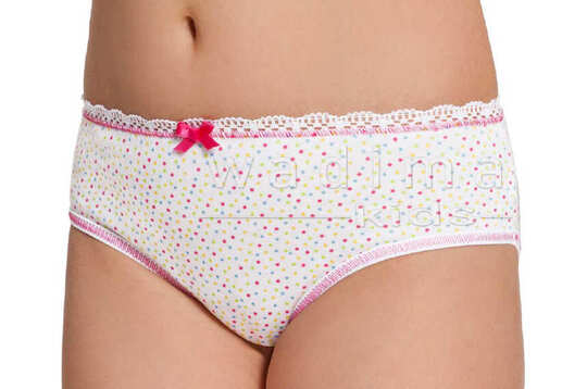 Pas wykończony ozdobną gumeczką i kolorowym przeszyciem. Po środku mała, atłasowa kokardka. Nogawki wykończone sprężystą, bawełnianą lamówką, z kolorowym, ozdobnym ściegiem. Miłe dla ciałka, a dzięki starannemu wykończeniu, trwałe w użytkowaniu. Z podkoszulkiem 40248, koszulką nocną 404123 czy piżamką 404122 mogą tworzyć ładny, dziewczęcy komplet bieliźniany. Pakowane po dwie sztuki (każda z innym kolorem ozdobnego przeszycia i kokardki - różowym bądź niebieskim). Możliwość zakupu mniejszej ilości, jednak ze względów technicznych brak możliwości zamówienia konkretnego koloru przeszycia (można napisać w uwagach).