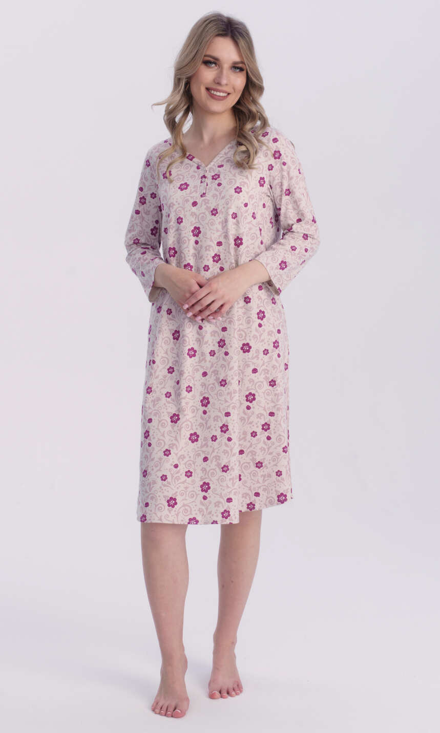 Fason klasyczny, minimalnie rozszerzany ku dołowi. Dekolt w serek, wykończony dwucentymetrową wypustką z tego samego materiału, zapinany na trzy małe guziki. Rękaw wszyty klasycznie, z podkrojem, zakończony jak dół koszuli - podwinięciem. Estetyczna, przyjemna zarówno dla ciała jak i oka.