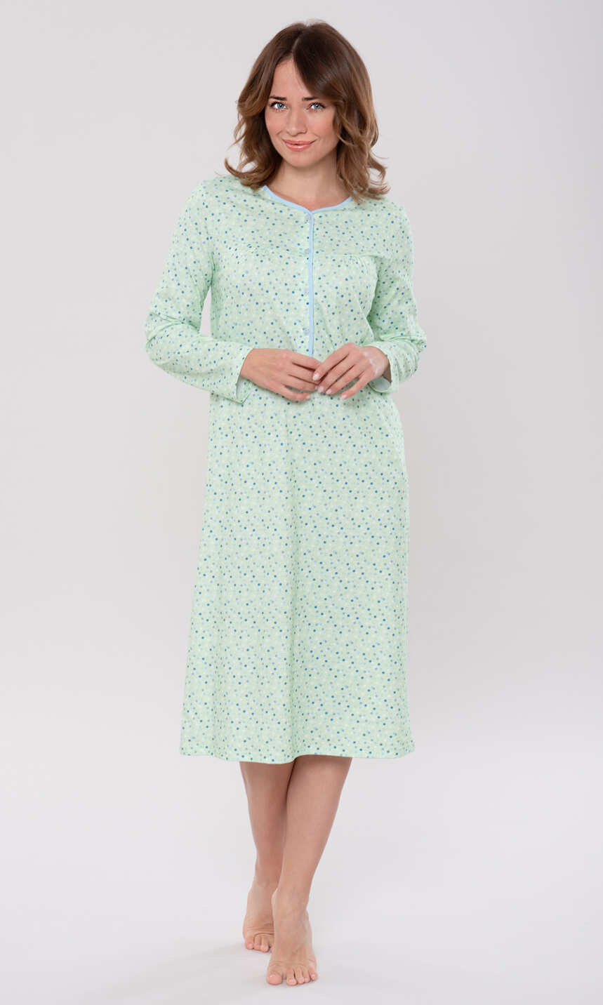 - 226 - zieleń pistacjowa - (z drobnym nadrukiem w niebieskie i blado-błękitke groszki)