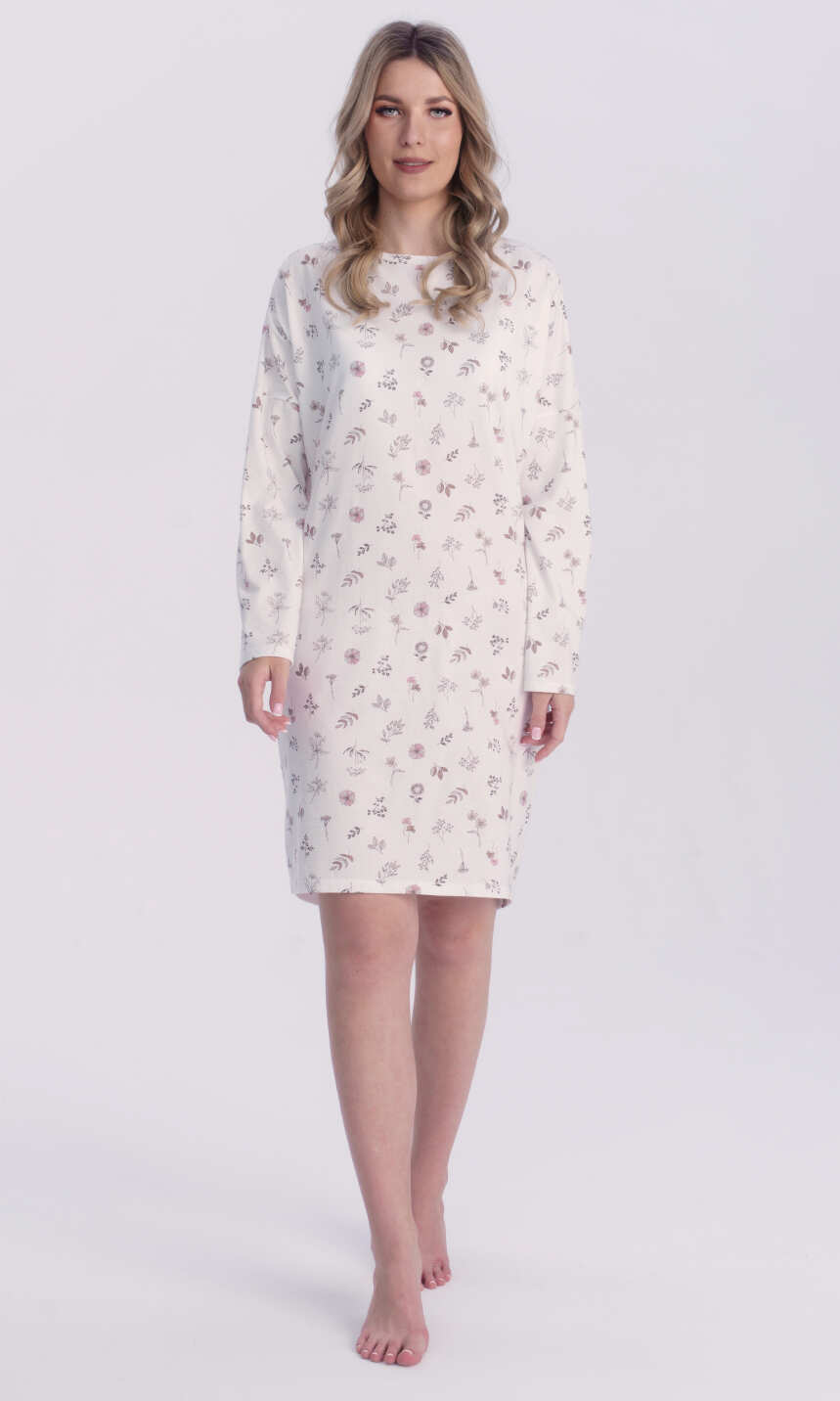 Cała w kolorze ecru z delikatnym, dopasowanym kolorystycznie roślinnym wzorem. Wykonana z najwyższej jakości bawełny.