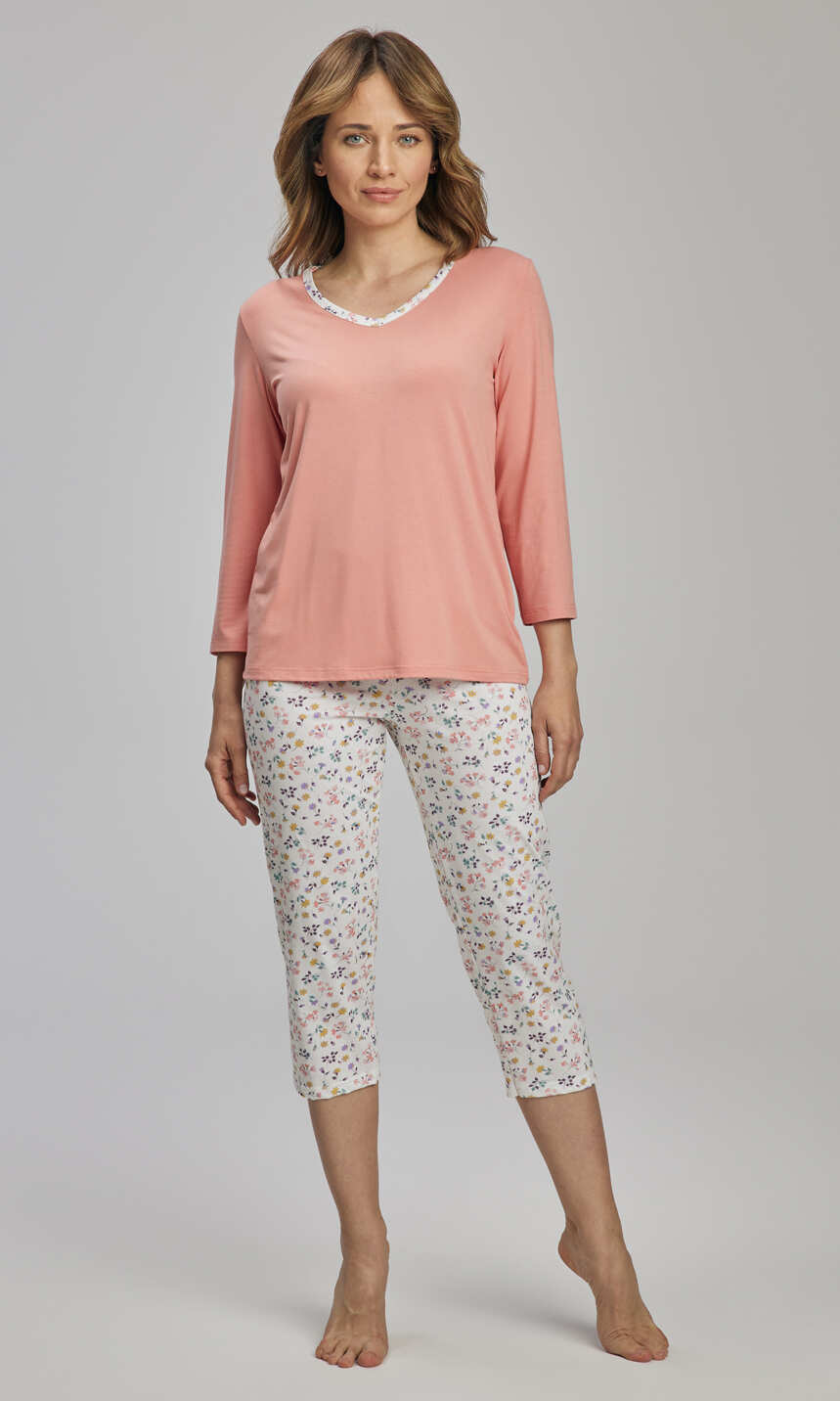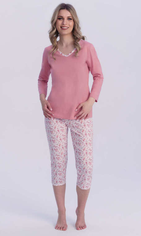 104574 Piżama damska; rękaw 3/4, spodnie 3/4.