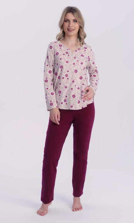 104791 Piżama damska; długi rękaw, długie spodnie.