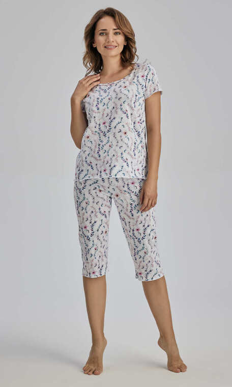 Cała z ładnie zestawionym kolorystycznie, roślinnym motywem na białym tle. Wykonana z najwyższej jakości czystej bawełny. Miękka, miła dla ciała.
