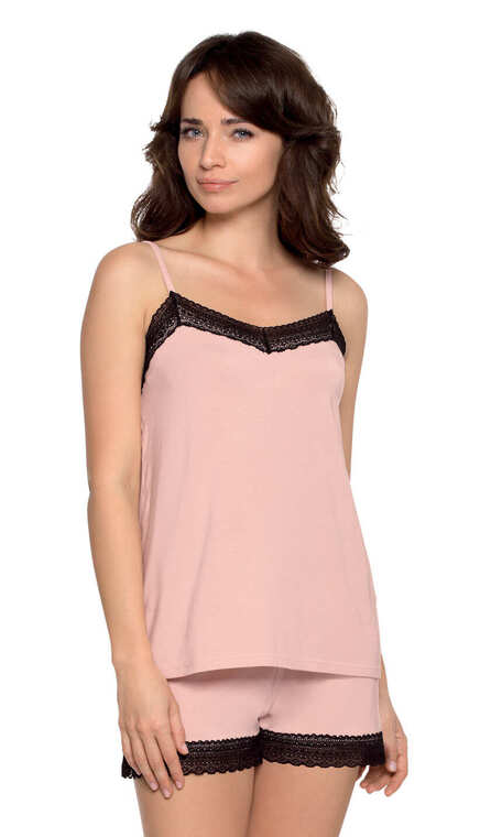 Z szeroką, czarną bądż w kolorze ecru, koronkową wstawką przy dekolcie i wykończeniu nogawek.. Bardzo dobra gatunkowo. Wykonana z połączenia dwóch naturalnych dzianin - wiskozy modal - lekkiej, delikatnej, nadającej dzianinie atłasowy połysk oraz miękkiej, miłej w dotyku najwyższej jakości bawełny.