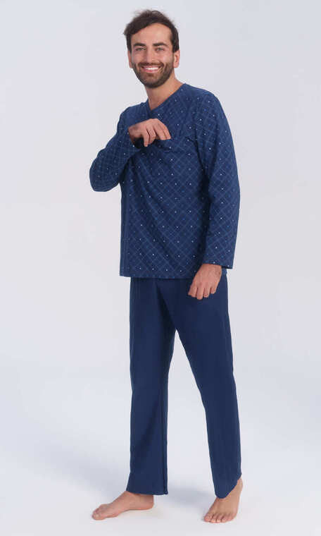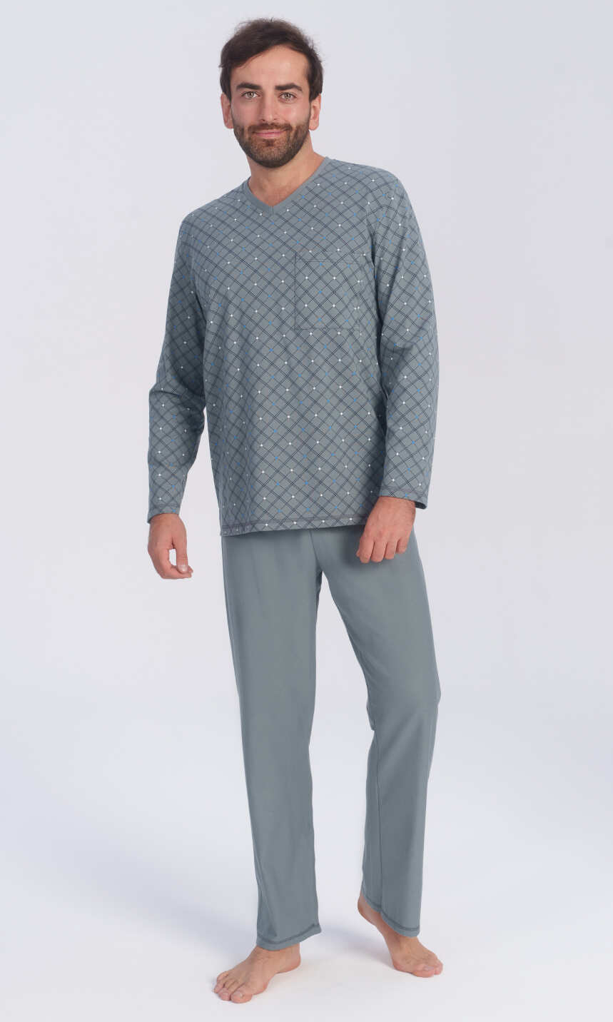 Klasyczny model piżamy mający spore grono zwolenników. Wykonana z najwyższej jakości czystej bawełny. Miękka, przyjemna dla ciała.