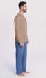 W delikatnym kolorystycznym zestawieniu łagodnego beżu z jasnym indygo. Wykonana z czystej, najwyższej jakości miękkiej, przyjemnej dla ciała bawełny.