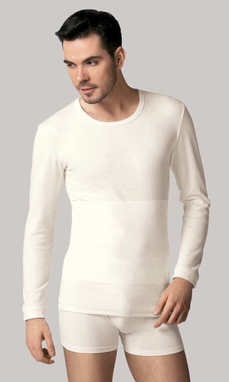 Podkoszulek termiczny z pogrubionym szerokim pasem, wykonany w technologii bezszwowej z połączenia mikro akrylu, wełny oraz bawełny.