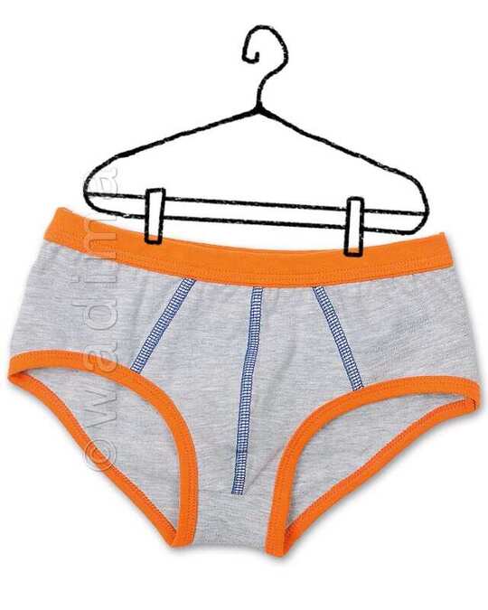 W bardzo ładnym zestawieniu kolorystycznym powstałym z połączenia szarego melanżu z pomarańczowymi, węższymi lamówkami przy nogawkach i szerszą, elastyczną lamówką w pasie oraz dekoracyjnymi, granatowymi przeszyciami z przodu, wyznaczającymi podwójny materiał. Anatomiczny krój zapewnia komfort i wygodę. Z podkoszulkiem 50216 i piżamką 50452 tworzą rewelacyjny, chłopięcy komplet bieliźniany.