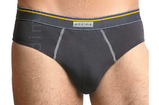 Slipy męskie o wygodnym, anatomicznym kroju. W pasie wszyta szeroka guma. Z przodu, po bokach kontrastowe, dekoracyjne przeszycia. Nogawki wykończone podwinięciem z zaszytą w materiale cienką gumą. Wygodne i estetyczne.