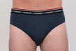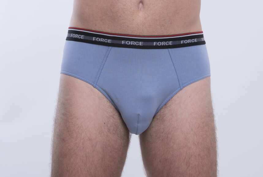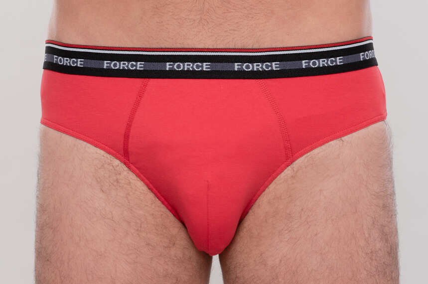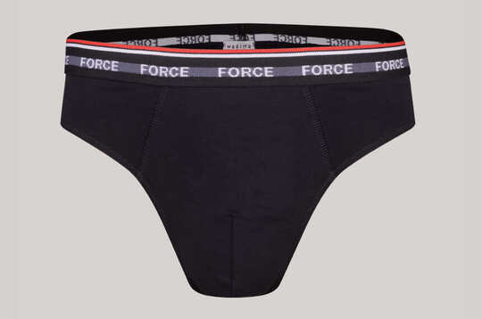 Slipy męskie o wygodnym, anatomicznym kroju. W pasie wszyta szeroka, czarna, z wąskimi biało-czerwonymi paseczkami i napisem FORCE na szarym pasku guma. Z przodu wzmacniana podwójnym materiałem, wygodna kieszeń o anatomicznym kroju. Po bokach dekoracyjne przeszycia w kolorze slipów. Nogawki, by nie ocierały, wykończone podwinięciem z zaszytą w materiale cienką gumą. Wygodne i estetyczne.