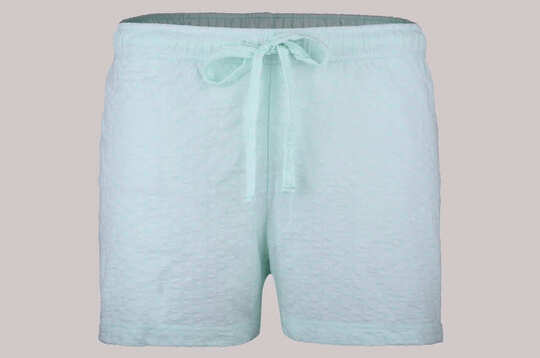 W pasie wciągnięta i zaszyta trzycentymetrowa guma oraz bawełniany troczek do ewentualnego ściągnięcia i zawiązania. Nogawki krótkie, zakończone podwinięciem. Z bluzką damską 103622, 103126, 103124, 103717 czy 10307 tworzą bardzo ładny komplet bielizny nocnej.
