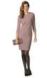 Dekolt półokrągły, mało wykrojony. Na przodzie ozdobne, rozchodzące się promieniście z lewego górnego boku na prawy bok cięcia. Tył gładki. Rękaw 3/4, tak jak i dół sukienki ładnie wykończony podszywarką. Miękka, miła dla ciała, a dzięki dodatkowi elastanu wygodna w użytkowaniu. UWAGA!: sukienki duże, obszerne; proszę zamawiać o rozmiar mniejsze!