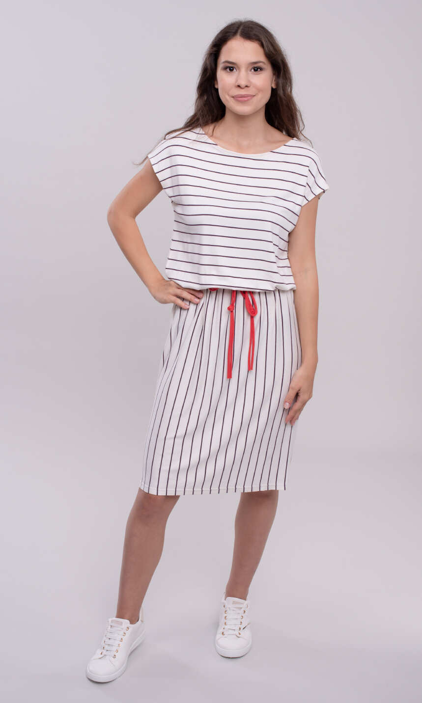 W młodzieżowym stylu, w zawsze modne i na czasie paski. Wykonana z delikatnej, chłodzącej wiskozy i nadającego dzianinie sprężystości elastanu.