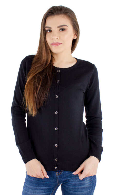 Klasyczny model zapinany na guziki, z półokrąglym dekoltem . Miękki, przyjemny dla ciała, wykonany z połączenia bawełny i akrylu.